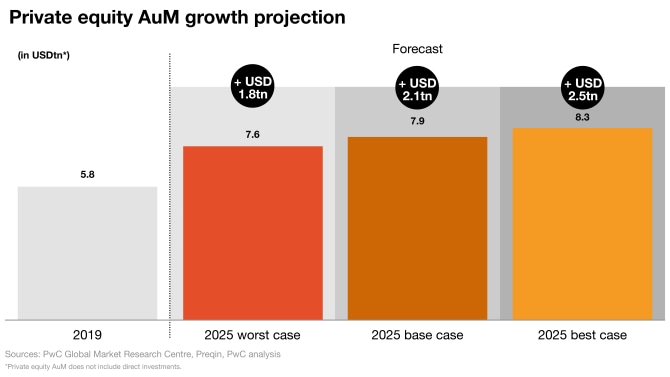 Although private equity is likely to have the lowest CAGR of the four asset classes between now and 2025 (6% to 7.7%), it will remain the largest asset class and is growing by the greatest amount in absolute terms. The secondary market could see especially fast growth. This development reinforces private equity growth opportunities, as it improves liquidity in this classically illiquid market.