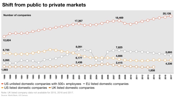 A shift from public to private markets is also driving fund expansion, though the change is being offset by growth in special purpose acquisition companies, through which several private companies have gone public again. These parallel developments, though they seem to